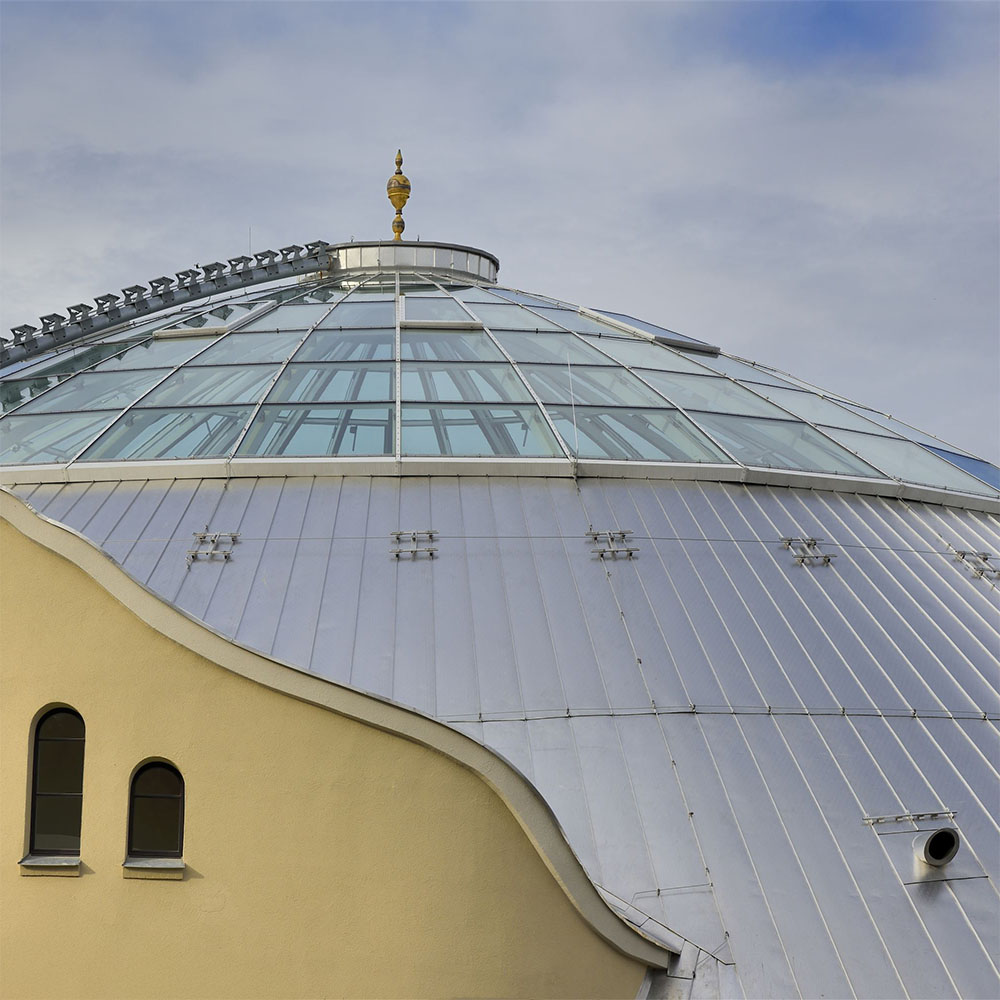 Neben der Stahlkonstruktion umfasste der Auftrag auch das Aufmaß des historischen Bestandsgebäudes sowie die Umsetzung des kompletten Dachaufbaus inklusive Dämmung, Dachhaut und Verglasung der Kuppel. Damit wurde die neue Konstruktion passgenau in die bestehende Bausubstanz integriert.