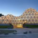 Im Mittelpunkt steht eine großmaßstäbliche Stahlkonstruktion, die aus einem fein abgestimmten Netz von Trag- und Verbindungselementen besteht. Die komplexe Geometrie des Daches – mit einer großen ovalen Hauptkuppel und vier anschließenden kleineren Kegelformen – wurde als durchgängiges räumliches System entwickelt und umgesetzt.