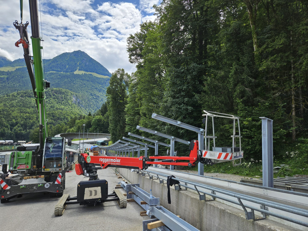 Besonders herausfordernd war die Montage am Hang mit bis zu 27° Neigung. Jede Komponente musste millimetergenau platziert werden, sodass höchste Sicherheits- und Qualitätsstandards gewährleistet sind. Sorgfältige Planung und handwerkliche Präzision machten die Umsetzung möglich.