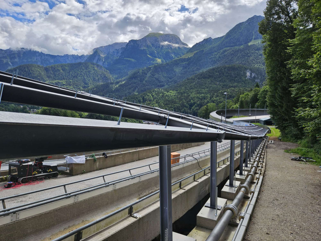 Am malerischen Königssee haben wir die traditionsreiche Kunsteisbahn erfolgreich wiederaufgebaut. Das Projekt vereint handwerkliches Können, modernste Technik und Respekt vor der langen Historie dieser Sportstätte.
