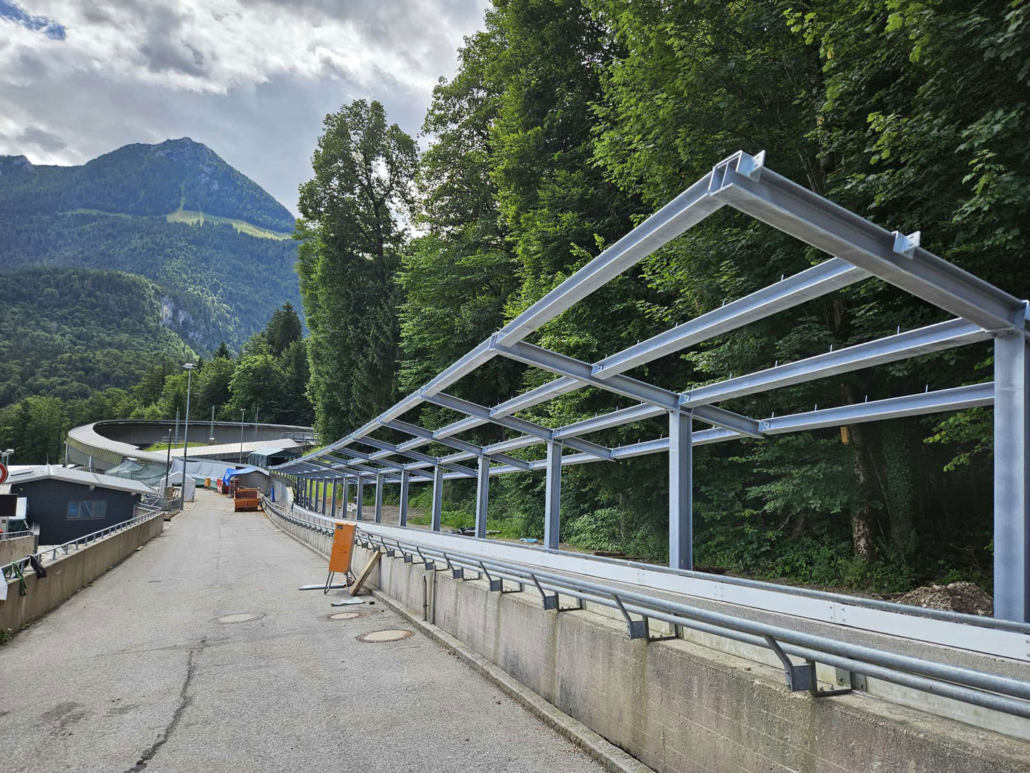 Die neue Überdachung schützt Sportler zuverlässig vor Witterungseinflüssen, ohne die Dynamik und den Erlebnischarakter der Bahn einzuschränken. Stabilität, Funktionalität und modernes Design gehen hier Hand in Hand – für ein optimales Training und sichere Wettkämpfe.