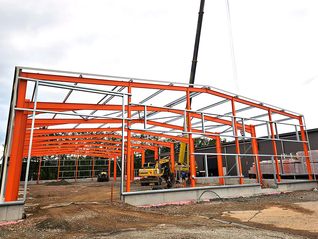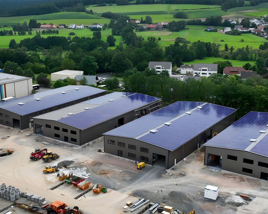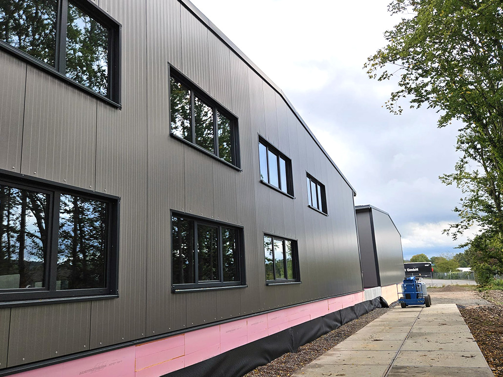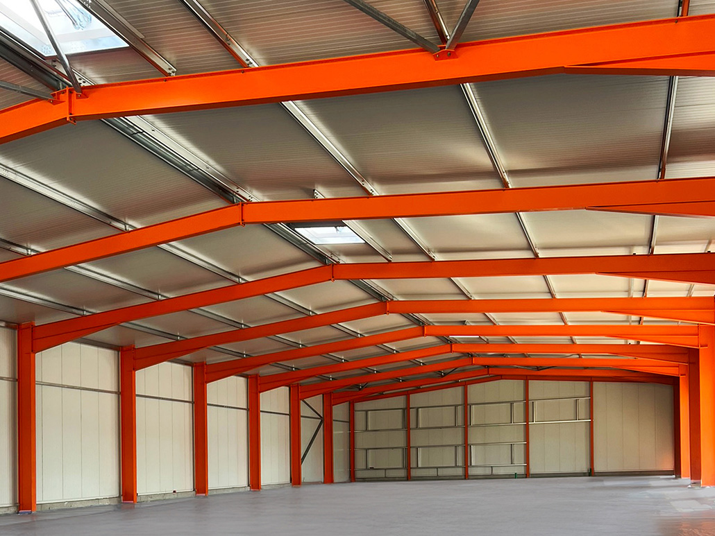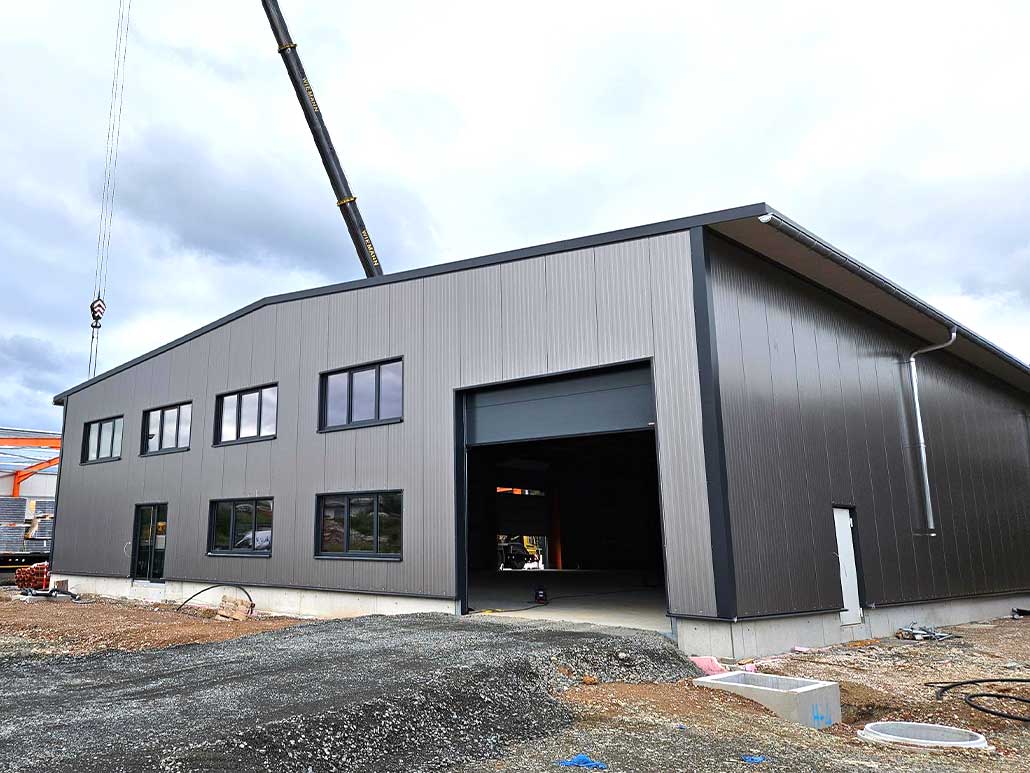 Da wir bei allen Gebäudeanschlüssen volle Gestaltungsfreiheit hatten, konnten wir die Konstruktionen optimal auf unsere Fertigungsmöglichkeiten abstimmen und so eine besonders wirtschaftliche und funktionale Lösung entwickeln. Die komplette Umsetzung einschließlich Dach- und Wandverkleidung erfolgte präzise und effizient. So entstand ein moderner, robuster Hallenkomplex, der die Anforderungen des Standorts hervorragend erfüllt.