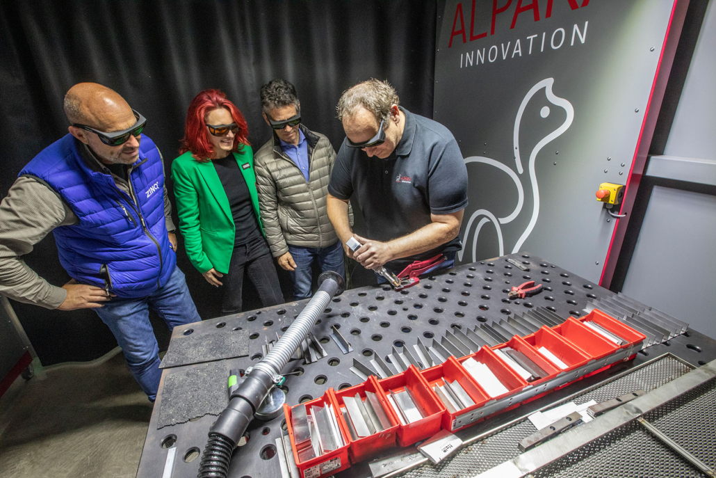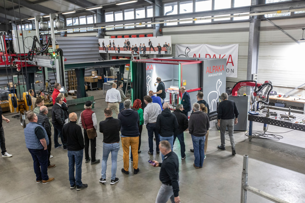 Torben Radtke, Frank Hartmann, Betriebsleitung Alpaka Innovation GmbH, Dipl.-Ing. Karsten Zimmer, Bereichsleiter Technik beim Bundesverband Metall